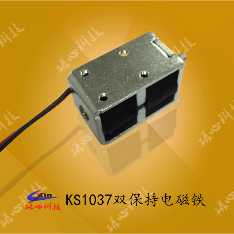 KS1040雙保持電磁鐵屬于微型推拉式電磁鐵,具有雙保持功能,產(chǎn)品可以在沒通電的情況下在永磁鐵的作用下保持在一個位置,保持力的大小可根據(jù)客戶的要求設(shè)定。電磁鐵廠家--磁心