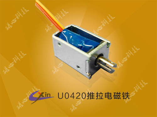 微型電磁鐵、小型電磁鐵推拉式電磁鐵磁心科技針對小型電磁鐵有豐富的設計經驗和成熟的制造工藝。U0420微型電磁鐵體積小、成本低。被廣泛用于家用電器、玩具設備和各種門鎖設備。