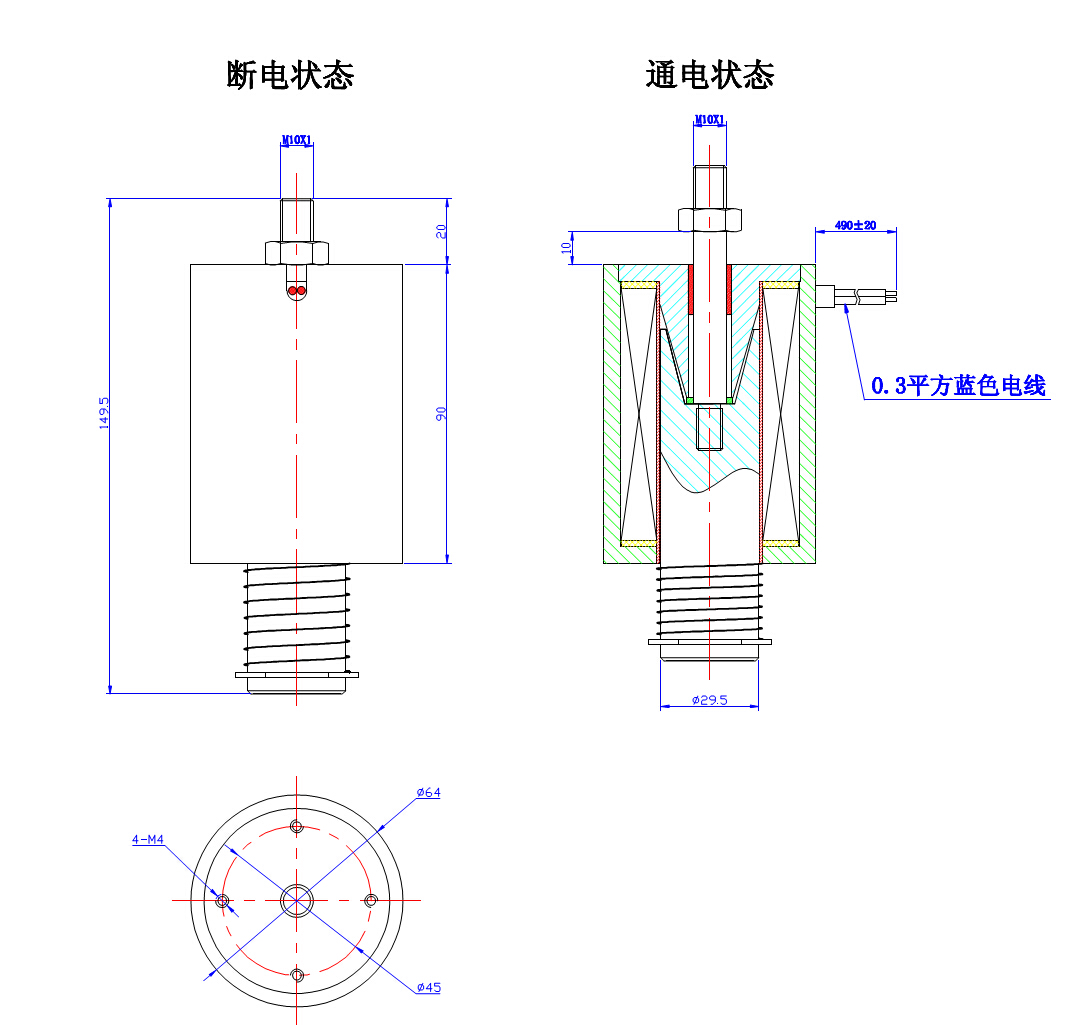 三:電磁鐵廠家T6490圓管電磁鐵一般使用直流電:6、12、24、48、110、220、380V電壓。